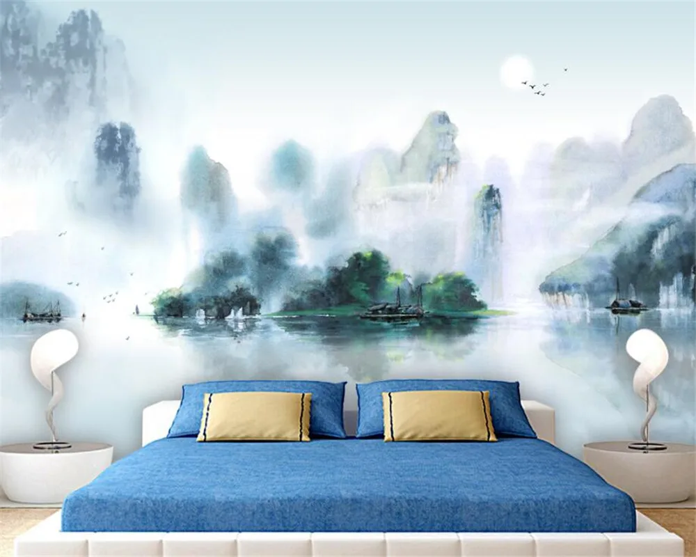 Beibehang Wallpaper Kustom 3d Stereo Tinta Jiangnan Lukisan Modern