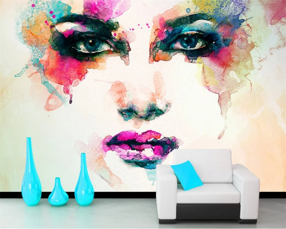 Beibehang Lukisan Cat Air Bibir Merah Abstrak Kecantikan Senior